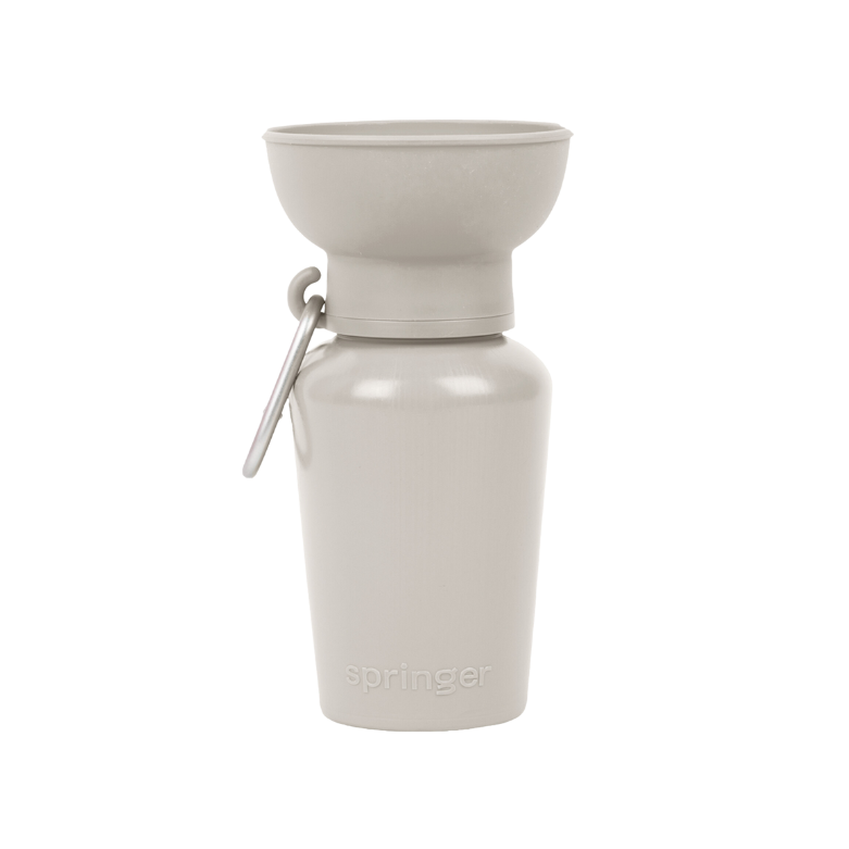 Make sure your dog always has enough water, wherever you are - ideal for walks, hikes or on the go! This clever water bottle is specially designed so that your dog can drink directly from the integrated bowl, without wasting water. Gently squeeze the bottle to fill the bowl; when you let go, the remaining water automatically flows back. Leak-proof design and equipped with a handy carabiner for easy attachment to a bag, belt or backpack.