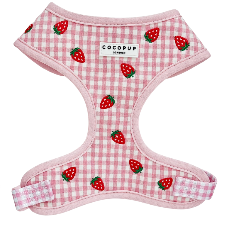 Maak je klaar voor een super schattige zomer met ons Strawberry Picnic Pup-harnas! Dit roze-witte ruitjesharnas is versierd met lieve geborduurde aardbeitjes en heeft een veiligheidssluiting op de gesp voor zorgeloze wandelingen met je hond. Dankzij de verstelbare hals is het ideaal voor pups van alle maten. Laat je pup pronken en de jaloersheid op andere hondenbezitters worden! 🍓🐾 Onze verstelbare halsbandharnassen bieden een comfortabele en stijlvolle vervanging voor halsbanden. Schuif het over de kop van je pup, stel de hals en borstband in, klik de zijkant vast en je bent klaar voor de wandeling!