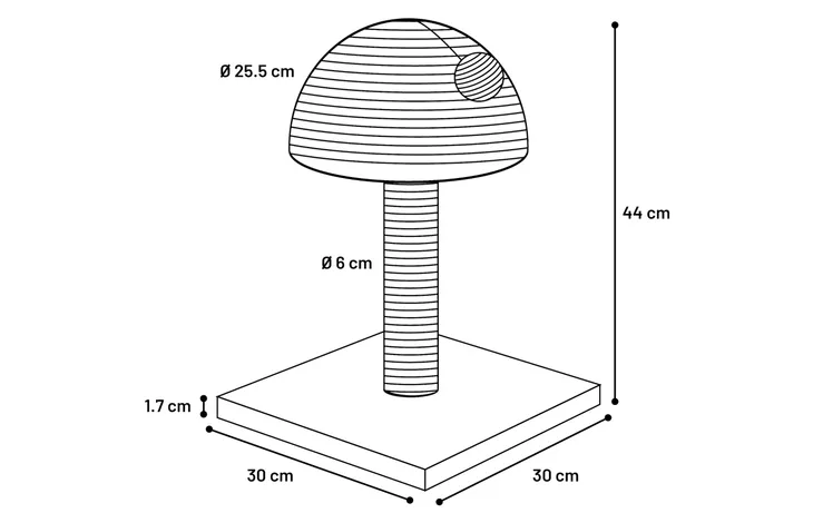 - Dikte bodemplaat: 1,7 cm en diameter krabpaal: 6 cm