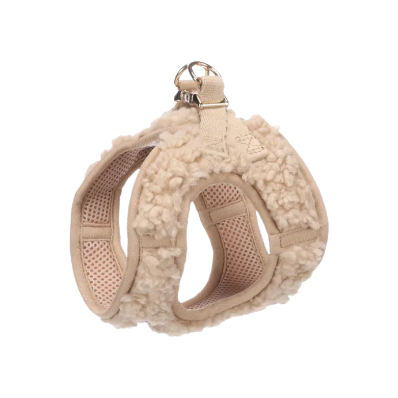 Dit superzachte Pookie harnas is perfect voor jouw viervoeter! Met een handige kliksluiting en verstelbaar met klittenband voor ultiem comfort. De goudkleurige details geven een chique touch aan dit beige fleece harnas. Laat je hond in stijl uit!