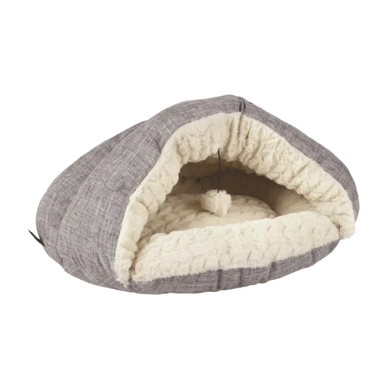 Geef je kat een knusse plek om te chillen met deze superzachte Zupo grot! Gemaakt van pluche en linnen-look textiel, met een gezellig balletje voor extra speelplezier. Makkelijk wasbaar op 30°C. Purrfect voor jouw harige vriend!
