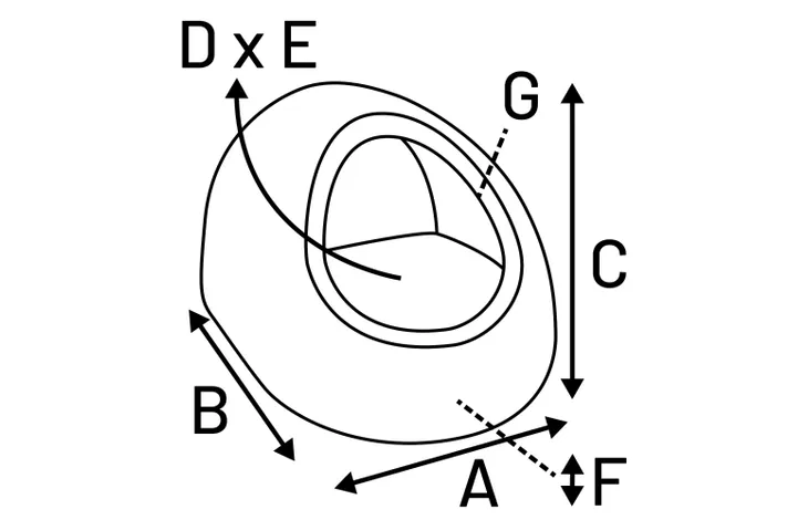 Formaat: A:38cm B:52cm C:30cm D:25cm E:45cm F:14cm G:22x22cm