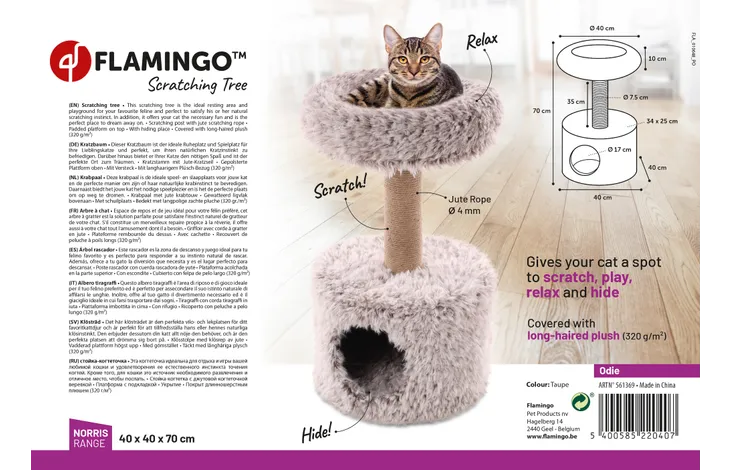 De KRABPAAL ODIE TAUPE is perfect voor jouw kat! Gemaakt van zacht langpolige pluche en voorzien van een jute krabtouw. Met een diameter van 8 cm en een gewatteerd ligplateau en schuilplaats. Jouw kat zal er dol op zijn!