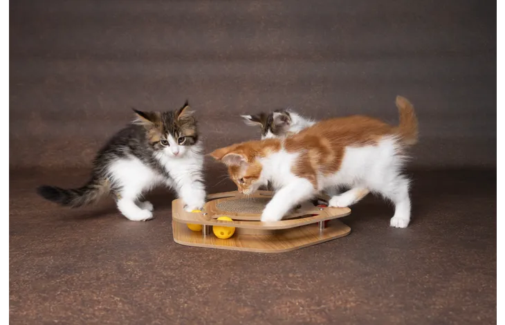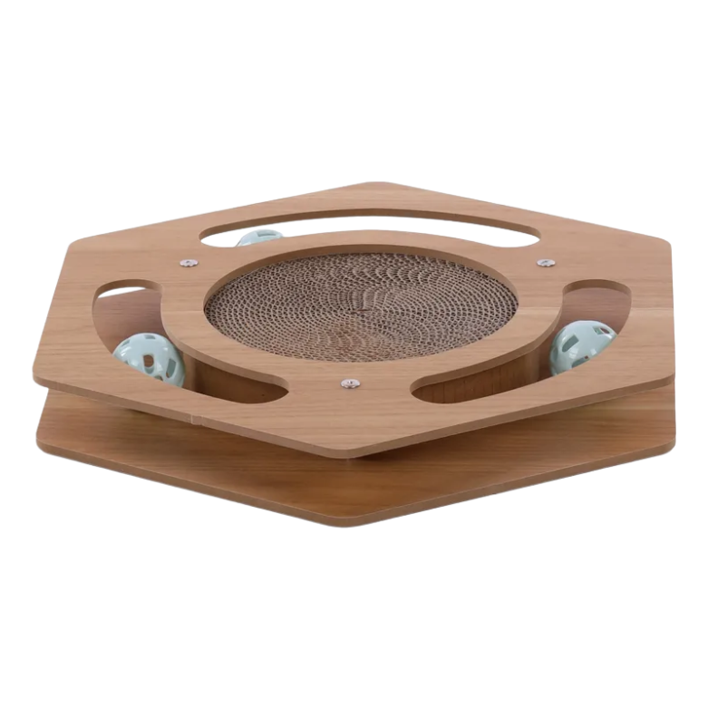 Dit krabspeelgoed Densi zeshoek is perfect voor jouw kat! Gemaakt van MDF en karton, met 3 rinkelende balletjes en een zakje catnip. Jouw kat zal zijn natuurlijke jachtinstinct niet kunnen weerstaan!