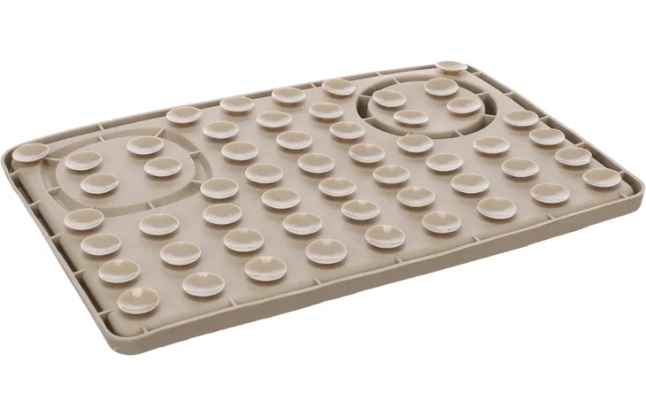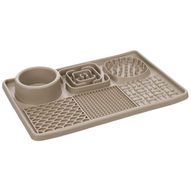 Etenstijd wordt een feestje met deze siliconen 2-in-1 likmat en eetpotje Pengu in taupe! Perfect voor zowel honden als katten; ook de kleinste vriendjes kunnen smullen. Met zuignappen blijft hij stevig op zijn plek. Geschikt voor natvoer, snacks en zelfs smeerpasta. Vaatwasmachinebestendig en diepvriesbestendig tot -20°C, dus superhandig!