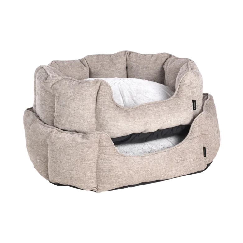 Laat je harige vriend relaxen in stijl met de Maylo mand! Gemaakt van zacht textiel en pluche voor ultiem comfort. Het wasbare kussen zorgt voor extra knusheid. Met antislip bodem voor extra stabiliteit. Jouw huisdier zal er dol op zijn!