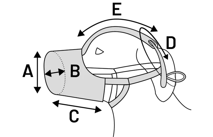 - De traploos verstelbare nekriem en voorhoofdriem zorgen ervoor dat de muilkorf niet verschuift