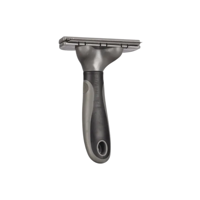 De Ontviltingshark L is perfect voor honden met een korte of lange vacht. Verwijder snel en makkelijk losse haren met het druksysteem. Het rubberen handvat zorgt voor een goede grip en het beschermingskapje beschermt de tanden. Makkelijk schoon te maken!