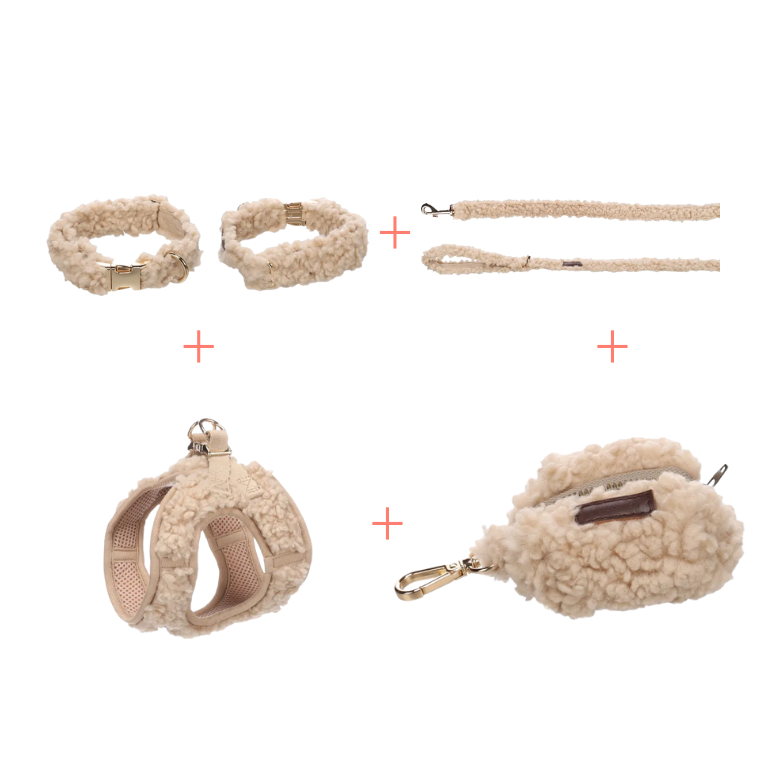Deze superzachte Pookie-set is perfect voor jouw viervoeter! De halsband en het harnas zijn voorzien van een handige kliksluiting en zijn verstelbaar. De goudkleurige details geven een chique touch. Laat je hond in stijl uit!