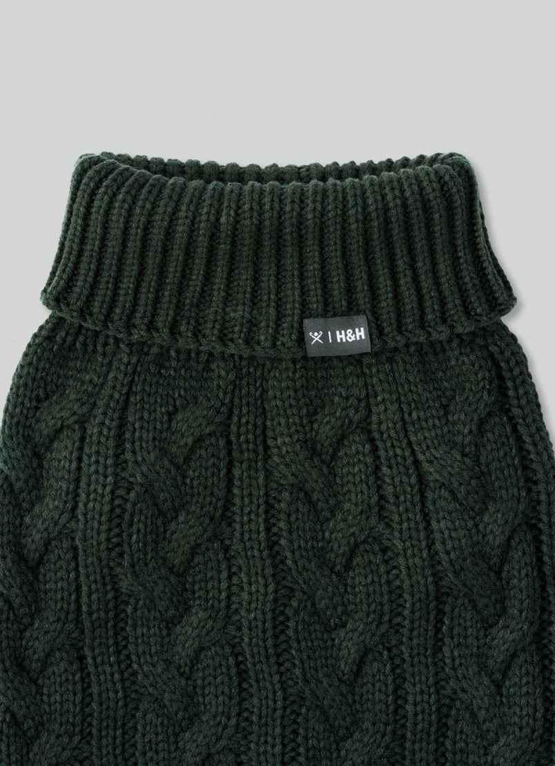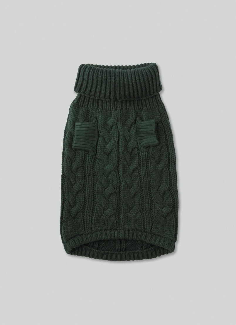 Deze kabelgebreide trui is gemaakt van een zachte acrylvezel die optimale warmte en comfort biedt voor je hond. Het kledingstuk valt op door details zoals de stijlvolle hoge kraag en een praktische opening om de halsband vast te maken. Deze trui is perfect om je huisdier te beschermen tegen de kou tijdens het komende winterseizoen.