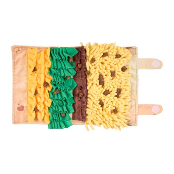 Vouw deze Burrito open en laat je hond snuffelen en zoeken naar de lekkere snacks.