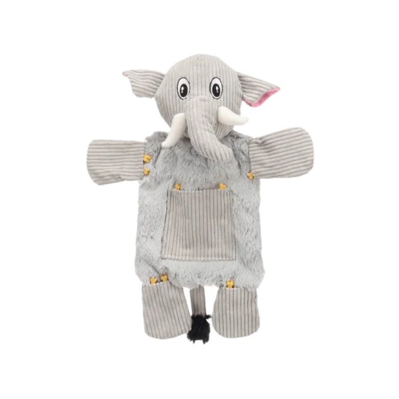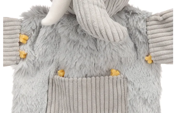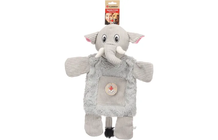 Laat je harige vriend lekker ravotten met dit schattige grijze olifantje! Gemaakt van zacht pluche en afgewerkt met ribfluweel. Stop wat lekkers in z'n buik en laat het speelplezier beginnen met squeaker en knispergeluiden. Plezier gegarandeerd!