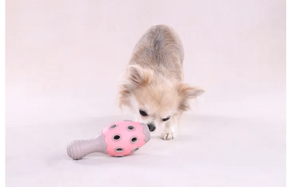 Dit roze rubberen speelgoed voor puppy's is perfect om te kauwen en te spelen! Vul het met lekkere snacks en je pup zal er dol op zijn. Gemaakt van duurzaam rubber en heeft een handig formaat van 15,3x6,6x6,6cm.