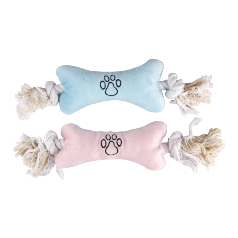 Verwen je pup met dit zachte pluche been met katoenen touw. Perfect voor trek- en apporteerspelletjes.