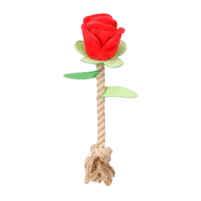 Verras je hond deze Valentijn met Rozie, een schattig speeltje in de vorm van een roos! Het zachte pluche, het stevige touw en het knisperende geluid zorgen voor urenlang speelplezier. Perfect voor trekspelletjes en gezellige momenten met jouw liefste vriend.