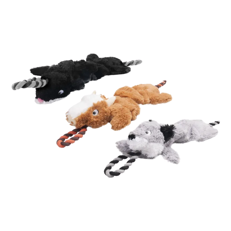 Dit pluche dier met touwlus is perfect voor jouw huisdier! Gemaakt van zacht pluche met een touw binnenin voor extra speelplezier. Met squeaker en handvat om spelen aan te moedigen. Geen vulling!