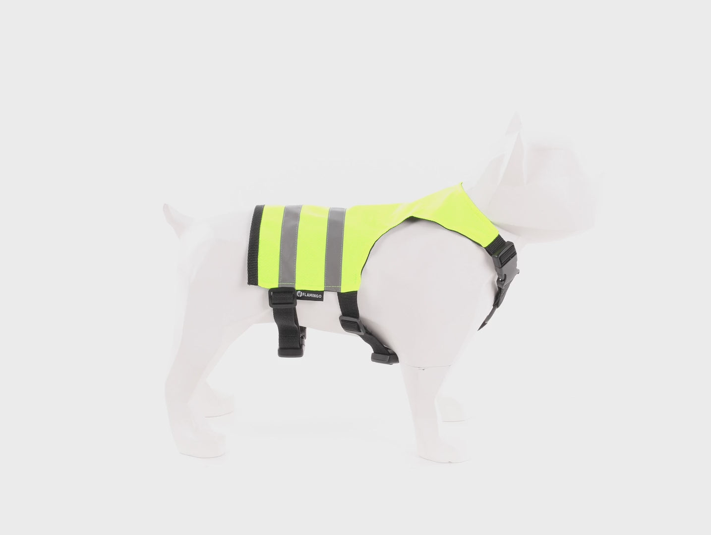 Deze polyester veiligheidsvest met kliksluiting is traploos verstelbaar, reflecterend en gevoerd.