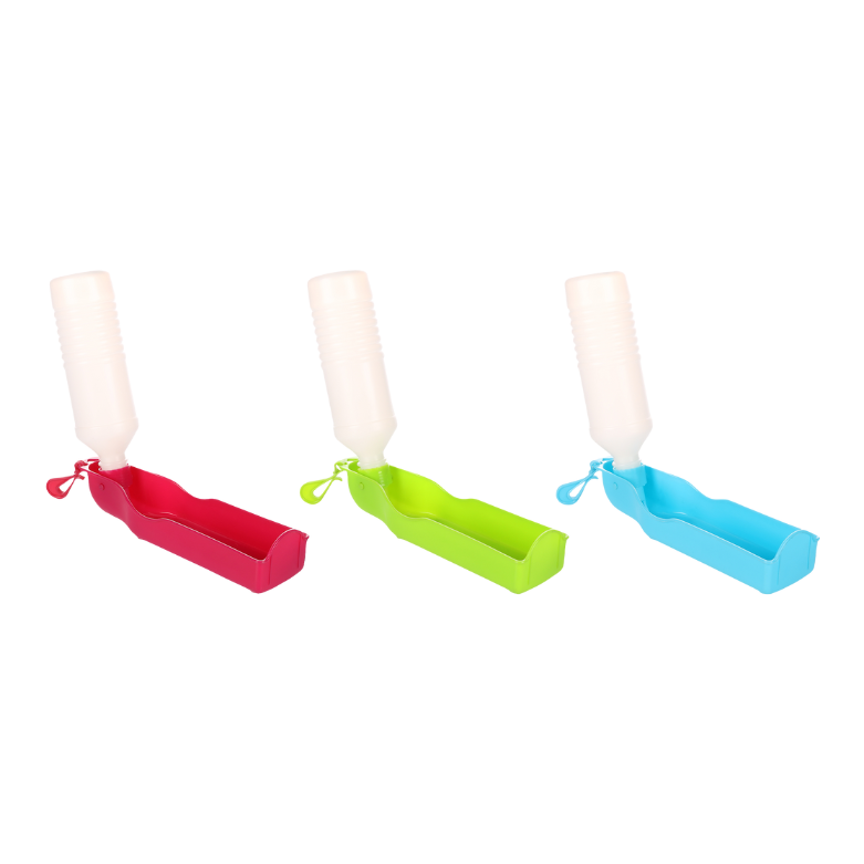 Ga op pad met je hond en onze handige drinkfles die ook dienst doet als waterbak! Verkrijgbaar in 3 kleuren. Ontdek snel en ontvang één fles in een verrassende kleur. Perfect voor avonturen met je trouwe viervoeter!